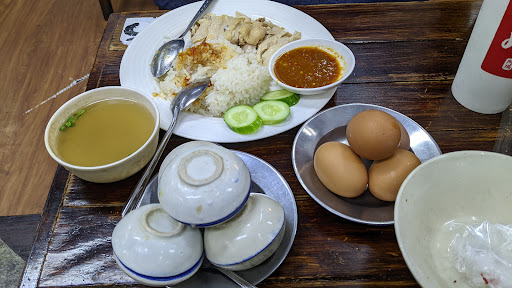 Read moreWe were glad stopping by here for our dinner (Not sure what the store name is in English) but I can guarantee that this noodle shop is awesome and never let us down. Originally we thought just another common noodle shop but aha just realized that this is one of the favorite noodle shop in town. We ordered Hainanese chic rice (nice chilli), Spicy braised 🐔 rice, pork skin cracker, Tom-yum egg noodle, Thai green tea and milk tea, milk pudding, and Coconut pandan cake. The taste of noodle and chickens are above standard and we're impressed with the dishes. We ended up having the desserts more and more. What a joyful experience! The price is really affordable and you will also be spoilt with variety of noodle choice. Definitely will come...