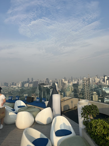 Ā Ā Ā Read moreItās definitely worth booking this bar if you want to be at one of the highest levels possible for city viewing & sunset. For Thailand prices it is an extremely expensive bar. The small tables on the edge are comfortable but most of them are right in front of their speakers which isnāt ideal. And the seats are quite low so your vision of the city is impaired by the bushes they have running on the edge. If the bar is busy then you do have the best seats to stand up and take photos. If the bar is quiet, then paying for a cheaper seat one row behind is recommended because the cost is cheaper and itās high stalls so the view is better. If you book the expensive tables on the edge be prepared to spend minimum 6000 baht (but as a couple, 3 rounds of [expensive!] drinks you easily spend it) Music played is decent, the cocktails are fun, and staff are lovely (Lukman mostly served us and he was very friendly and helpful). The free snacks served are crisp which I think were an odd blue cheese flavour (!),...