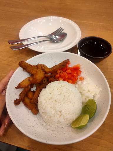 Read moreOur first visit we served by a guy who was very polite and eager. Waiting time was reasonable and short. Ordered rice with squid and other a vegetarian set meal. For the vegetarian set meal we give 2stars,taste ok but rice portion too tiny, so would not fill up a normal empty stomach. For the seafood rice,squid was soft and easy to chew,prawn was ok too,octopus felt like plastic,rice bit dry and hard although entire portion was fulfilling.This we give half star.In comparison the vegetarian set meal was more tasty than the non-vegetarian set. After finishing,we sat there a woman started moping the floor before she did start moping she served two local women,she also thanked them with hearable tone. On our turn she billed us and gave change by just putting the change on our table, no gesture and with no eye contact. When we got up to leave she was free. She said nothing not...
