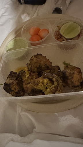 Ordered the chicken biryani and it was quite a bit like the container was stuffed right to the brim and it was pretty good for a take away and then we ordered the chicken boneless like kebabs!