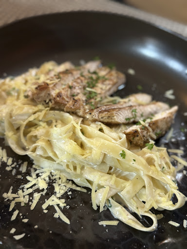 Food: every meal was surprisingly good. We didn’t expect much but were pleasantly surprised. The skirt steak was cooked perfectly to medium. However, they don’t have steak knives so it can be hard to cut. The garlic pizza was thin but delicious. It was cooked quickly too. Mushroom soup was enough for two people with double servings. It needed some salt but not much. The Parmesan sauce over the chicken pepper tagliatelle was very tasty. We were so pleased with the dishes.