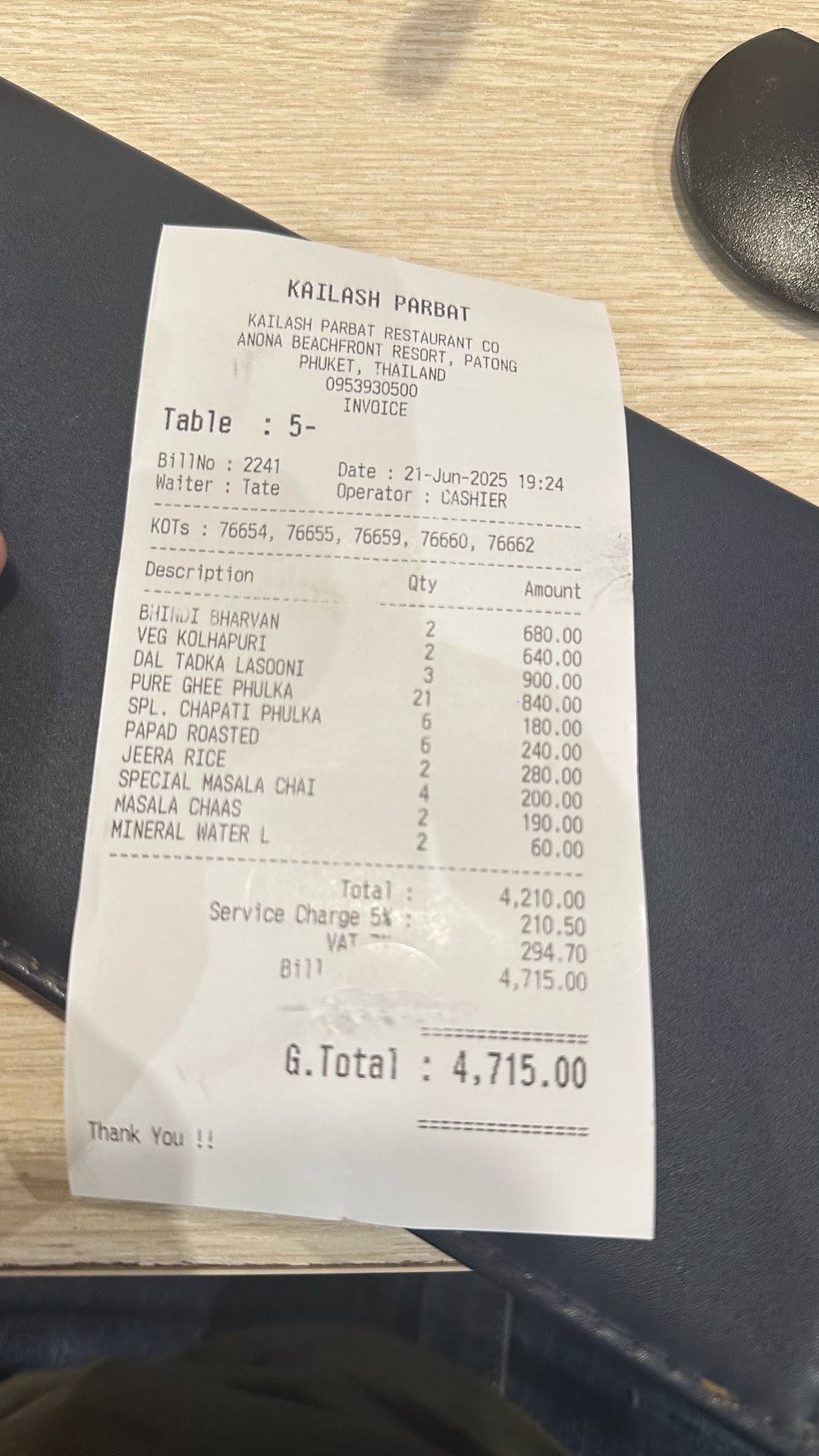 Read moreKailash Parbat in Phuket is a delightful gem for vegetarians seeking an authentic culinary experience. From the moment I stepped in, I was impressed by the warm ambiance and friendly staff. The restaurantâs commitment to serving pure vegetarian dishes is commendable.