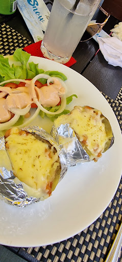 The baked potato, was potato's! Two! With beans and cheese. It got pass marks 👍🏽