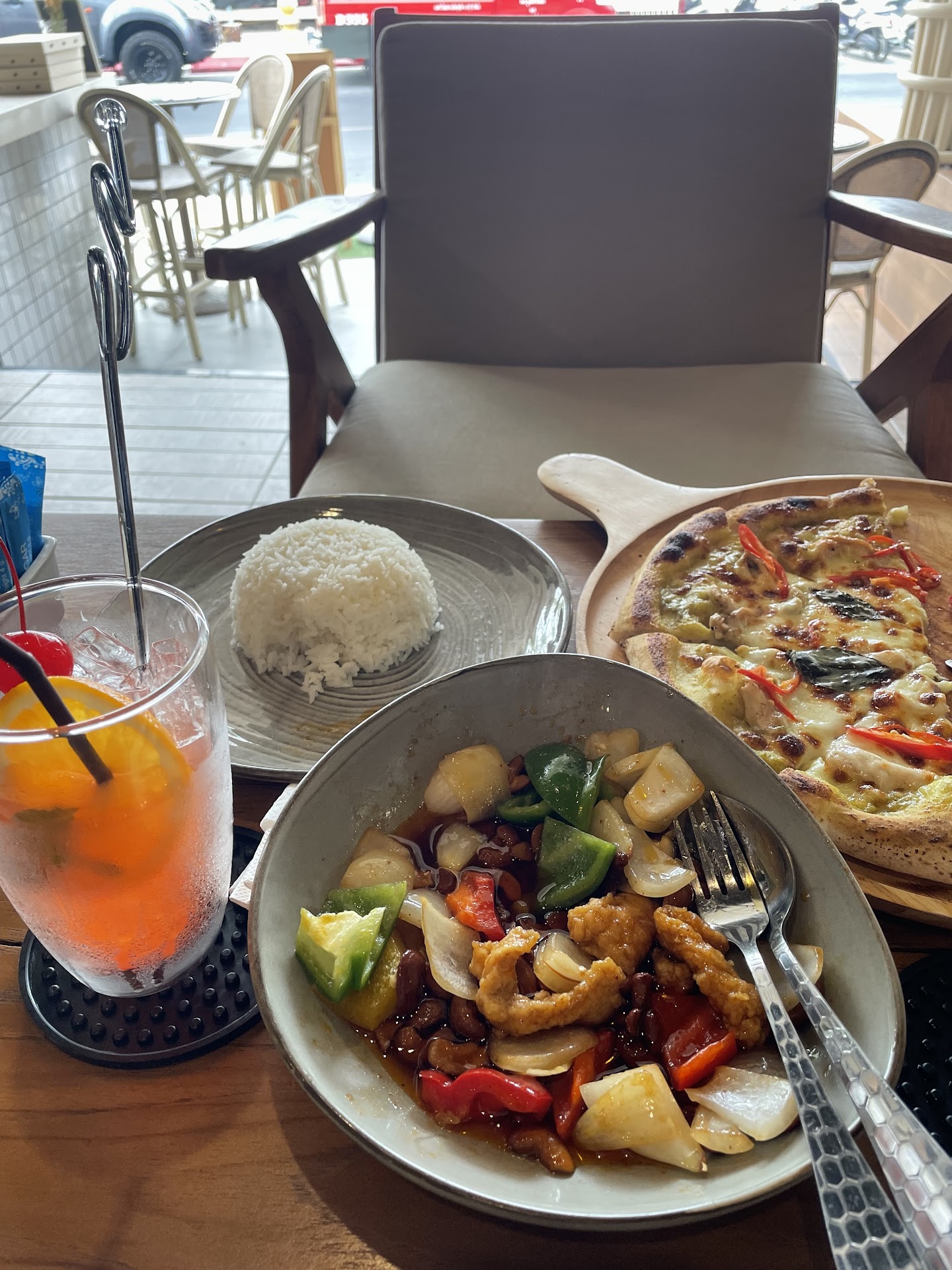 We are a family of five and we all chose different meals from the menu, we had pasta, burgers, pizza and Thai, all guests said the food was delicious including myself, the food arrived quickly, the pizzas are large and cooked in a pizza oven at the front of the restaurant and were perfectly cooked, I had the cheeseburger and it was packed with flavour, two guests had the Thai and pasta and both said we’re perfectly cooked with good flavour, the total cost is about the price you pay for a beachfront location in Patong, the only downside was there was no background music or atmosphere, there was a TV playing YouTube videos of a family living in the wilderness (bit weird to be showing this over playing music) we were also the only people in the restaurant around 6pm so it felt quite sterile and in the hour we were dining there no one else came in to eat, maybe this was du to us eating...
