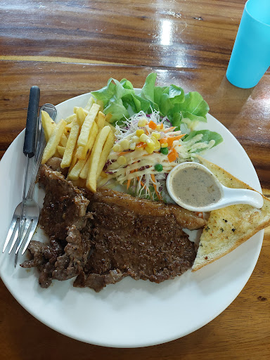 Read moreAlthough there's a Lil wait time to get seated, the atmosphere is more of a local experience with ppl from various background. The fact it is in a less tourisy area makes the price good as compared to other places right at patong beach where all the restaurant Jack up their price. Black pepper chicken and pork steak (89 baht) as well as the rib eyes steak are very delicious. Portions are great too. There is also a drink store next to it that has coconut for only 35 bht (cheapest I find so far in Thai) and kratom drink (25 baht) that helps sleep as according to the lady that sells them. This place is worth it...