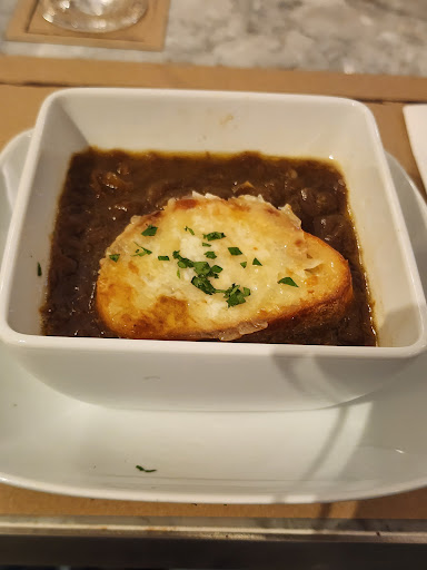 The waitress was likewise grumpy. She refused to serve me any alcohol, even though it not a holiday, so had to order a "mocktail." Further, she didn't understand that I wanted the soup and brie/ham app dishes served first, and THEN the steak dinner second so it didn't sit and get cold, thus after the app and soup were finished. Nope. She was the only staff member wearing a moron-mask so it was concerning that she may be infected with something. Covid?