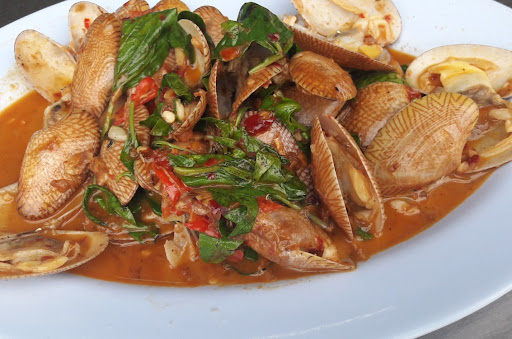Recommended dishes, Pad Hoi Lai (stir fried hoi lai clams) and Pik Gai Tord(fried...