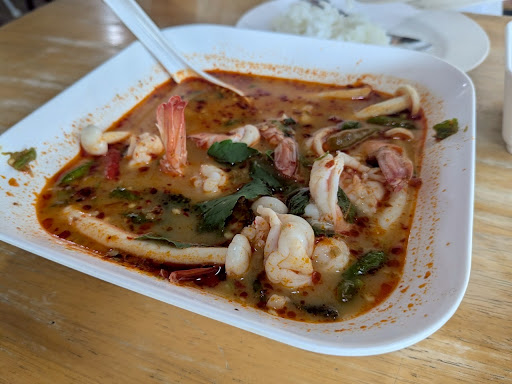 Read moreArrived at 11:00 on a Saturday; ordered four dishes: fish soup in lemon grass, squid stirred fried with salt egg yolk, shrimp sashimi, and fried fish with garlic. All outstanding: service was courteous, order came quickly, the food was tasty and inexpensive (each dish at 100-125 baht).