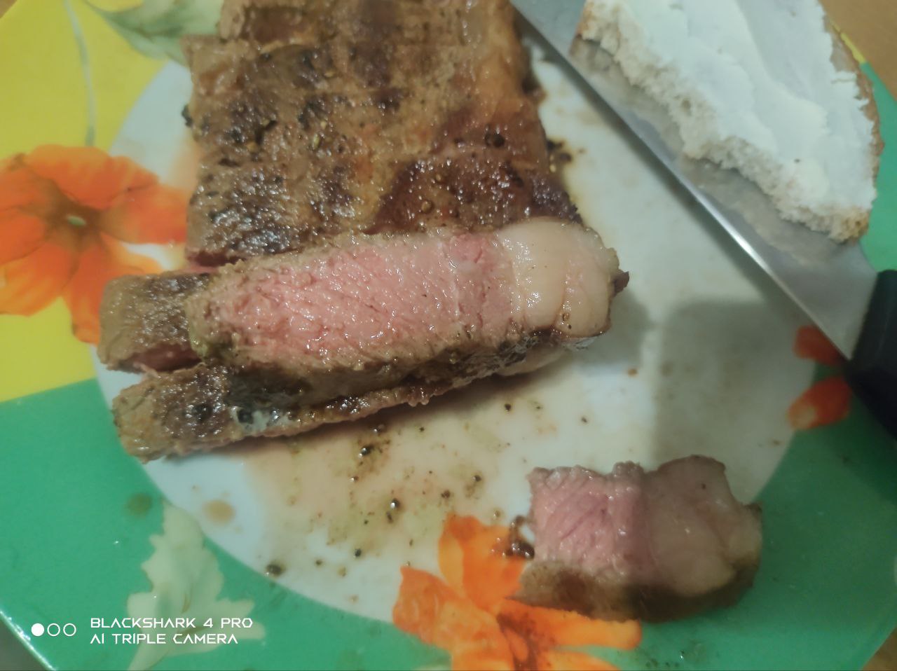 Решила написать отзыв, после того, как сама сделала стриплойн (по сути тот же Нью-Йорк, но с более толстой линией жира на боку). К сожалению кукурузного от корма от "Primebeef" не было, но был травяной от "Мираторг" (самые лучшие производители стейков в РФ). Вышло в 900₽+, или 300+ батт Сделала так - где жировая прослойка боком обжарила на сильном огне минуту, дальше добавила сливочное масло и с каждой стороны по 2:30± минуты, и на 10+ минут в фольгу для доготовности (можно в печь на 60С°, или нужную вам температуру, у меня не работает). ОГО, У НЬЮ-ЙОРКА ЕЩЁ КОСТЬ (Т.Е. ОНИ ПРИНЕСЛИ ДРУГОЙ? Заметила при...