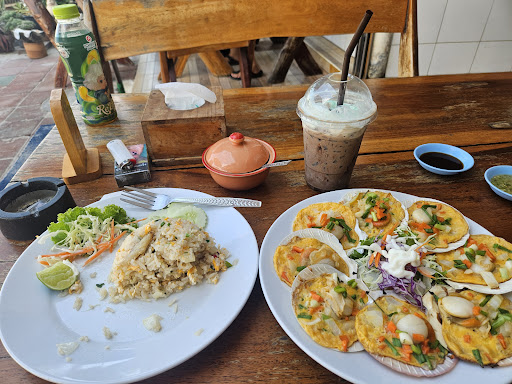 Great family own restaurant with a chef who is creative. The seafood is fresh from the ocean steps away. We had two seashells, deep fried seabass and morning glory. The dish that stood out the most was the giant seashell that was turned into sashimi. The chef was kind enough to give us the giant empty seashell to take back with us. Dinner cost was about 50 bucks. It was well worth it that we came back the next morning to have breakfast there and got the blue crab curry, giant prawn grilled and mixed veggie. The blue crab curry was perfect!! Cost for the meal was under 30 dollars. Highly recommended this restaurant for...