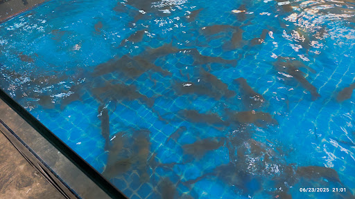Очень понравился этот буфет. Свежие, вкусные морепродукты (гребешки ван лав), рыба, живые креветки и крабы. Можно готовить самим на гриле, что-то можно попросить приготовить на кухне. На столах выдают два отсека с углями, можно поставить на них жаровню + суп (бульоны только мясные, рыбных нет, но можно поставить просто воду) или две жаровни (одна литая, одна решёткой). Мидии, гребешки можно отдать препарировать (открыть, почистить). Есть множество соусов, овощи, фрукты, гарниры готовые и те, что нужно приготовить самим (очень вкусно жарить кукурузу на гриле). Для тех, кто не ест мясо (как мы) — для жаровни можно попросить растительное масло в зоне раздачи кухни, дают без проблем в пиале (мясоеды могут взять в холодильнике кусочек сала). Также для мясоедов есть ассортимент мяса для жарки в холодильниках. Живых креветок берите не сильно много разом — они имеют свойство очень проворно сбегать со стола 😁 Ещё есть немного роллов/суши и различные десерты. Мороженое в ассортименте без доплат, б/а напитки. За доплату салфетки (10 бат), алкогольные напитки и свежий кокос (последний 50 бат, но не холодный, мы просто добавляли лёд и было отлично).