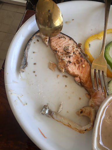 Food: We ordered salmon steak, somtam, iced caramel macchiato, and iced lemon tea. Food Rating: 2/5 âą Salmon Steak: This was the first time we had a salmon steak with so many bones in it. On top of that, it was overcooked, making the salmon meat tough. The presentation was actually good, and the portion size was decent. The sauce was just soy sauce. However, because of the many big and small bones, we had to eat carefully, and it wasnât enjoyable. In the end, we couldnât finish it because we were worried about the sharp bones. âą Somtam: We were hoping to try authentic somtam like the one from its country of origin. But here, the somtam was extremely spicy, with ingredients like unripe mango, caramelized dried anchovies, and small black crabs that werenât edible. The broth was overwhelming. When we ordered, no one asked about our spice tolerance. Typically, somtam is made from unripe papaya, right? 𫣠Because it was super spicy and sour (from the mango), we couldnât finish this either. âą Iced Lemon Tea: It was too sour. After having the spicy and sour somtam, drinking an overly sour lemon tea made us worried about acid reflux, so we didnât finish it either. âą Iced Caramel Macchiato: It was just okay, nothing special.