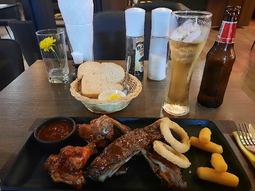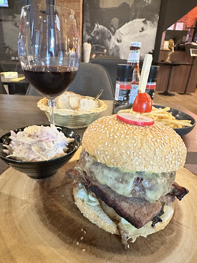 I ordered a brisket burger and added a 200 g patty , American cheese, grilled onions and BBQ sauce. Itโs was cooked to perfection. Juicy burger and tender smoky brisket. Every bite was sensational. Fries were very crispy