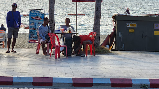 Read morePopped in for a refreshment due to the nice location. The place wasn't busy and it was well staffed, yet it took forever to get a menu, another forever to have our order taken, and eternity to get our round of draft beers served. Half an hour between sitting down and getting a beer. At least the beer was cold and refreshing and the price was OK, but food prices are extortionate. We decided to just snack on some cashews. A small plate cost 222 baht and they were not even served warm. We took that as a sign and moved on elsewhere. By the way, this is the only restaurant in the area still adding on the sneaky 17% ++ surcharges (an outdated practice that most places do not do anymore). Also super annoying factor was the jet ski operators across the street hooked up a loud speaker and were blaring out some terrible karaoke-style music right in the direction of the restaurant, which ruined the ambience. I suppose this is not the restaurant's fault, but if it were my restaurant, I would do whatever I needed to do to put a...