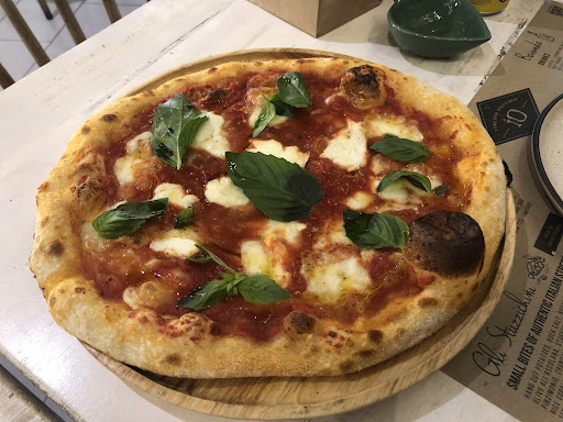 Anyway, once inside you're treated to free, fresh bread with olive oil and vinegar. The house draft beer here is really good. Especially if you're tired of the typical Thai offerings. The kitchen is open viewing which is a nice touch. The salads are delicious and often with hard to come by ingredients that you don't often see elsewhere in Thailand. I love the burrata pizza. I sometimes go for the daily specials that they've got written on the giant chalkboard above the kitchen.