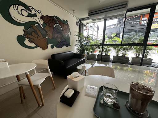 Otherwise, it's a nice, clean and modern coffee shop. Plenty of seating arrangements including couches, large tables, small tables, and barstools; all under aircon. Open atmosphere design with plenty of natural light. My almond milk mocha latte and chocolate croissant were both good. Many nondairy milk options available, including oat, almond, coconut and soy. They also offer some food and baked goods options. Clean, on-site toilet. The other downside is they do not accept credit cards.