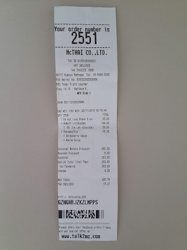 At The Avenue Mall. Open 24 hours. The Best McDonald's in Pattaya. They also have a McCafe if you want just a latte or a cappuccino. Cappuccino tastes better than specialty coffee shops. Costs 85 Baht. If you are solo, then sit on a stool by the window. It's great for people watching while you eat. But can't stay too long because the stools aren't that comfortable. The interior is shaped like an egg with curvy windows. Do not expect cheap prices. Everything is overpriced in Thailand.