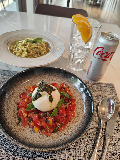 Prego Restaurant on Pattaya City Beach. It made a great impression even from the outside, in the Amari Hotel complex with its beautiful trees and ocean view. We arrived relatively early for dinner and wanted to leisurely enjoy the sunset. We were walk-in guests without a reservation and received a very friendly welcome. The restaurant has a modern design, with an integrated pizza station where you can watch the pizzaiolo conjure up delicious pizzas. After choosing our table, we were handed the menu, which offered a selection of excellent dishes. We then ordered starters and main courses, and of course, desserts. A huge compliment to the staff; everyone was very well trained, friendly, attentive, and prompt...refills were brought and cleared immediately, perfect. The choice of color-coordinated work clothes also matched the ambiance and interior of the restaurant. In short, I wouldn't say it was perfect, but everything was very, very good: the service, the food, the location, and the overall atmosphere. We had a great time and a reason to celebrate. We were treated to a good feeling and wonderful memories. What was great was that the manager (a nice Italian) came by our table and told us a bit about the Prego story, and we had a great conversation with him. We wish the company and the team much success and thank you very much for the hospitality. We will be back; everything was...