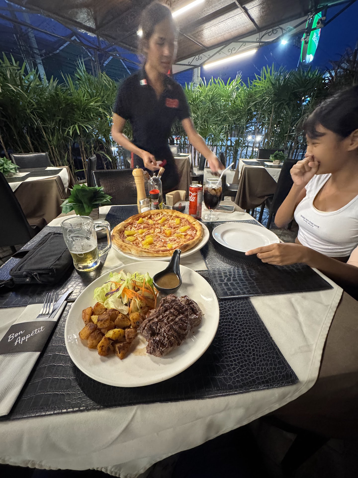 Always a pleasure to visit Pulcinella and the service team! Service is wonderful and Khun Nan 💘 😘 is a very lovely & sweet girl an DC so is the beautiful Manageress. Khun Jen and the othef nice waitressses (sorry forgot name)!!!. All staff are very friendly and accommodating. Prices are very reasonable and food/drinks are of good quality. Pizza and Brushetta are great, and the steak Tenderloin is WoW delicious ag only 550.-!!!!. Thai food is good (Chicken Cashew Nuts) delicious 😋! Will try other food soon. Sometimes they offer Beer promotion buy 2 get 1 free iwhich is good; they should also offer for cocktails. Cocktails about 179.- but glasses are small. Thet have a big center bar counter but the bar stools are wood and hard (should add a seat pillow) Overall a very nice neighborhood eatery with great service! Will be back and...