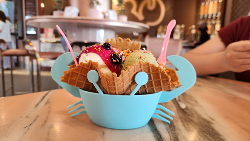 The ice cream shop seems to make homemade gelato style ice-cream. The ice cream itself is rich, creamy, and not overly sweet which is a plus. The ice cream is also served in a custom crab shaped bowl Which can be taken away after dining there as a souvenir.