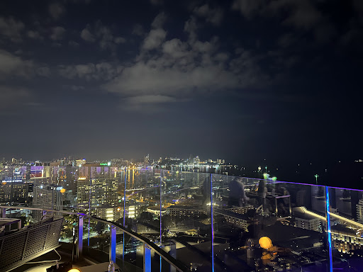 On the 32nd floor (rooftop) of Grand Centre Point Space Pattaya. It just opened 1 August 2022. Amazing bird's eye view of Pattaya and the gulf. The crew of the restaurant were very kind and it's understandable as they were all busy and on it's initial week with a lot of customers so it was taking long to give me a menu, get my order and be served. 🤔😁🙏 All in all, food was okay and reasonable 👍 , was thinking it would be expensive for the location. When i was asking for my bill, the lady whom i thought was a waitress, told me my meal was complimentary for keeping me waiting (like an hour++ haha). Wow! What a reward for being patient and understanding! 🥰🥳 Thanks Tammy! (i don't know her position but she said she was overseeing the restaurant for a week assuring everything would be going smoothly) .