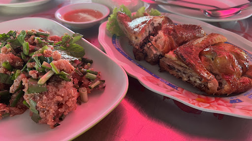 The first time was my Thai local friend took me here and told me that it’s a popular food stall with the famous Som Tum. I’ve been here many times since it. Grilled pork neck, Grilled beef, Som Tum, and Grilled chicken are my regular order. Grilled beef is good or not depending on your luck! Lol because I only feel good with the beef with fat. But the grilled chicken never disappointed me, and the good thing is that you don’t need to worry if you come alone, because you can order 1/2 or 1/4 chicken. This time I decided to try some new, so I ordered “Raw beef salad”, it’s a northeast Thai food. To be honest, it was too salty and I am sure I will not order it again! But the blue crab salad will be my next try. I remember how I was surprised when I saw many blue crabs are stacked on the plate. The only downside is that you will be sweating when enjoying the food here in the hot season because no air-conditioner as an outdoor food stall, so I really recommend you choose the seat which is not too close to the grilled rack. Kind reminder: They only open for lunchtime and...
