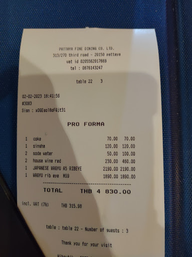 Read moreThis was a great experience and a must try, if you are a meat lover. We shared two steaks witch is recommendable so you will have the opportunity to compare different flavorsđ Truffle mashed potatoes along with pepper sauce and mushroom sauce. The Japanese wagyu A5 ribeye was so soft and melting in your mouth. The Australian wagyu ribeye MS9 was super tender and almost at the same level. But unfair to compare the steaks, because they both were amazing. The garlic is delicious. House redwine was suitable with the steaks. Recommend for sure. 2nd visit today Monday November 18. 2024 Greek salad and salmon tatar for sharing starters. For main we shared the hanger wagyu and the ribeye wagyu. Roasted potatoes and mashed truffle potato with pepper sauce, gorgonzola sauce and bearnaise sauce. The baked garlic so good. And a bottle of frensh red wine. Absolutely top quality. 6300,- baht...