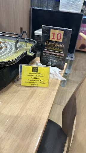 My friend and I came in expecting a nice meal, but unfortunately, it didn’t turn out that way. We didn’t eat all the stuff, especially sushi, because they were not tasty, so when we decided to leave, we were shocked to be told that we had to pay extra for each peace of sushi we didn’t finish. Overall it was 600 baht fine for both of us in addition to 1600 we should‘ve paid for the most expensive option (1400 baht for 2 people + service fee). The rule was written on a sign in Thai, a language neither of us understands. It felt unfair, as we had no way of knowing about this policy in advance.