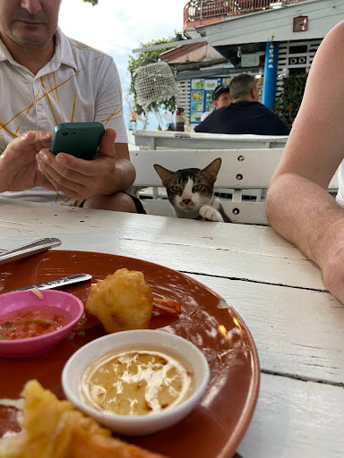 Came in for a noon drink and the view. This place is great. Nice beach view. It's like going back in time. There are some interesting cats that live there, very friendly. Great service, the lady also gave me some mosquito spray to use if needed. The prices for food and drink are reasonable. To get to this beach just walk all the way down the end of Pratumnak soi 4 and walk down the steep steps into the beach area. You will see this restaurant on your right side (past the other bar). From the beach, go up the steps...