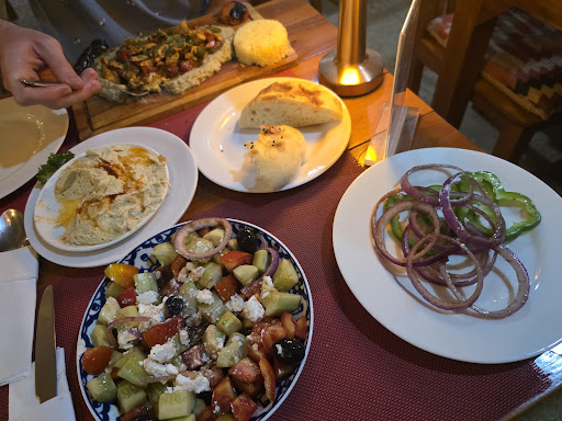Read moreHad high hopes due to the reviews and given our past experience with Mediterranean food in thailand (shoutout koh tao). I got the Greek salad and asked for no green peppers. When it came there were not only green peppers but probably half the bowl was red onion. I expected this as I noticed the server did not write down the 'no green pepper' request. It was also very heavily souped in balsamic vinegar and oil. We also got the hummus but unfortunately something was off about it. The plate was cold when we got it and something tested wrong. My husband got a chicken dish. He said the chicken and vegetables were well done and seasoned but the eggplant puree was lacking.