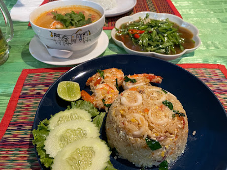 Ordered the Khao Pad which was cooked well and Tom Yum which made from tom yum paste from a jar but that was excusable because there is no way a restaurant of this size could cook everything authentically. The stir fried morning glory was cooked...