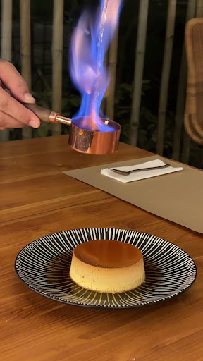 To end the meal, I had the Flan Flambé. The smooth, custard-like texture combined with the bittersweet caramel was heavenly, and the little flambé presentation made it even more special.