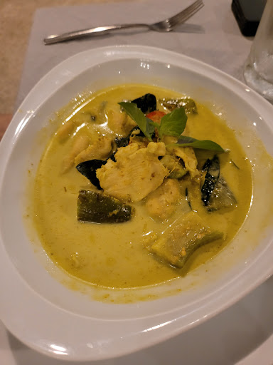 Green curry had two little pieces of chiken and we weren't asked Spice level so it was burning hot chilli. Pinaple rice was packed of sugar, like sweeter than a mango rice dessert. Onion soup was underwhelming. Dessert options were boring. We had caramel dessert was ok. The best part of the order was Mushroom soup - that's the only thing I could recommend. All of this cost $70 which is insane considering Thai prices.