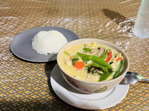 Food fresh and delicious; had green curry yesterday with chicken and vegetables and it was one of the best I’ve had in Thailand. Had the Pad Thai a few days ago and also fabulous. It’s a simple spot atmosphere wise and the owners are kind and turn on the fans even if you are the only one there! On a random side street so off the beaten track...