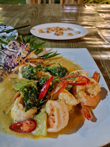 Food excellent, Service super friendly and chill, rustic beach Thai OK. I did a taste test tonight as I was staying nearby where the food and drinks are 3-4x and not as good. enroute to Phuket for business. This is a real gem!