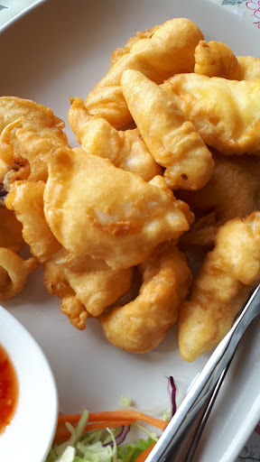 I really enjoyed my time at this place. We arrived just before sunset and watched it go down... and for about 15-minutes thereafter the sky was absolutely breathtaking! The food here was excellent! I had a seafood coconut soup served inside an actual young coconut! Wow! It was delicious as a soup, but I got a side of rice and ate it sort of like like a curry. I tried some of their handmade drinks as well and they were all tasty! Staff were all friendly, toilets, umbrellas if you want, beautiful beach the kids can play on while you eat, and there's some rocks to sit on too. Up above of the food area there is a sort of coffee shop I want to go back and visit also. And there are toilets too. The area was very safe and lit up after dark. The servers speak really good English, and the portions were western size too. LOL Highly recommend...