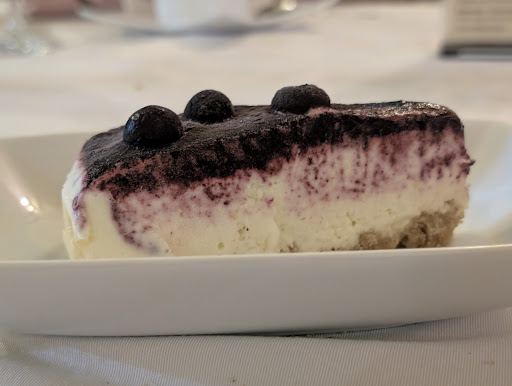 The cheesecake on the other hand was disappointing, on the dessert menu elsewhere it specifies that the lemon cake is semi-frozen (semifreddo) but the cheesecake it doesn't, so you expect a cheesecake but you get what the owner describes as a gelato cheesecake (it's frozen). Except it isn't soft and creamy like gelato, it just tastes like a frozen cheesecake, and it was noticeably more frozen in the centre. The blueberries were frozen through, too. It felt like "cheesecake gelato" was an attempt to justify a frozen and improperly stored dessert.