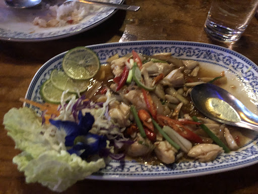 The best seafood we had on island, with a wonderful setting overlooking a working fishermen's canal. We knew the seafood was very fresh here, as we saw fishermen selling their catch to the restaurant as we walked in! We had the fried crab in spring onion and the chili salted prawns (paired with a medium squid fried rice), and I will find myself dreaming about these for weeks to come. The fried crab was done in a wonderfully tangy sweet sauce base, which was good enough to lick off the crab shell as you peeled the crab! The mud crab itself was on the smaller side, necessitating a fair bit of picking, but the sauce provided great flavors while cracking legs. The prawns were equally delightful and highly recommended, not very spicy, but a similar tangy sweet sauce and a nice crisp fry that, with the fried garlic on top, provided great crunch. Fried rice was also great, and added great filler in between seafood dishes! I only wish we'd gotten a fourth dish, as with, two crabs, 8 or so prawns, and a medium rice, I was full but eager to try more meals from such a great restaurant! Service was also phenomenal, and our server was a great resource for recommending the most popular dishes! With the ambiance over the canal, great service, and even better food, I can't believe this was also one of the lowest priced meals we had on the island. Take the trip out here, it is...