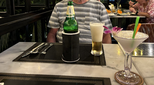 It became for us the most expensive restaurant for our all hollidays and really by far not the best. We ordered for our kids apple juice as usual. We got something like 12,5cl for 80B, for comparaison, a Cocktail is 99B. I have never seen such a small quantity for drinks anywhere else, not even in Europe you would get at least 25 cl. Food all over for the family was ok but portion still much smaller as other Restaurant of the areas. I took Squid grilled, supposed to be a speciality, it came by far the smaller I had or seen during my 2 weeks stays and came not even hot within less than 7min. Obviously not freshely cooked. They warmed it again but not even an appology. If you want a great fish food experience, go across the street to Orchid, you will get a great fish or squid you will pick they will do at BBQ at a descent price and you will get a better value of your evening. Other note, the waitress which is only ordering, was constantly coughing in her hands, obviously not washing them. Not great additional sign. However the deco is really by far the nicest I have seen. All together, you will surely pay a lot. Only for the view, but I won‘t...