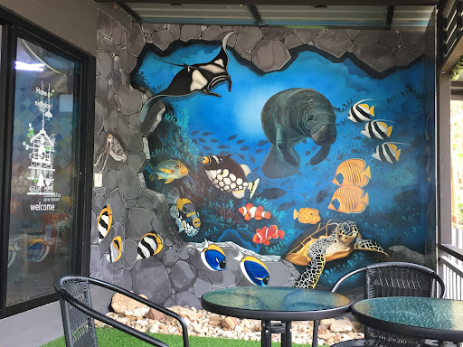Read moreUn petit café moderne, joliment décoré avec une fresque sous-marine . On peut aussi y manger, les plats sont faits dans la cuisine du restau plus local qui est à l’opposé en diagonale de la route. Le Phao thaï est très bon ainsi que la soupe de nouilles au poulet. Elle est vraiment très parfumée à la coriandre notamment. Smoothie à l’ananas préparé sur place, très bon, pas trop sucré. L’espresso est très...
