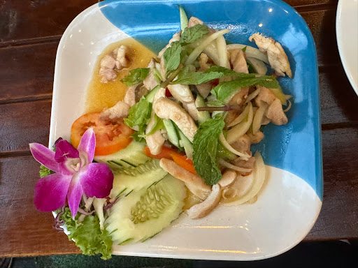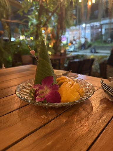 Nice music and friendly service. I like the bell on the table create for calling of service just ringing the bell then staff will come for take an order or bill. The price was cheap for me my curry just 120 baht and cocktail start 89 baht dessert Lava cake including ice cream just 100. Def a worthwhile lunch or dinner had free parking.