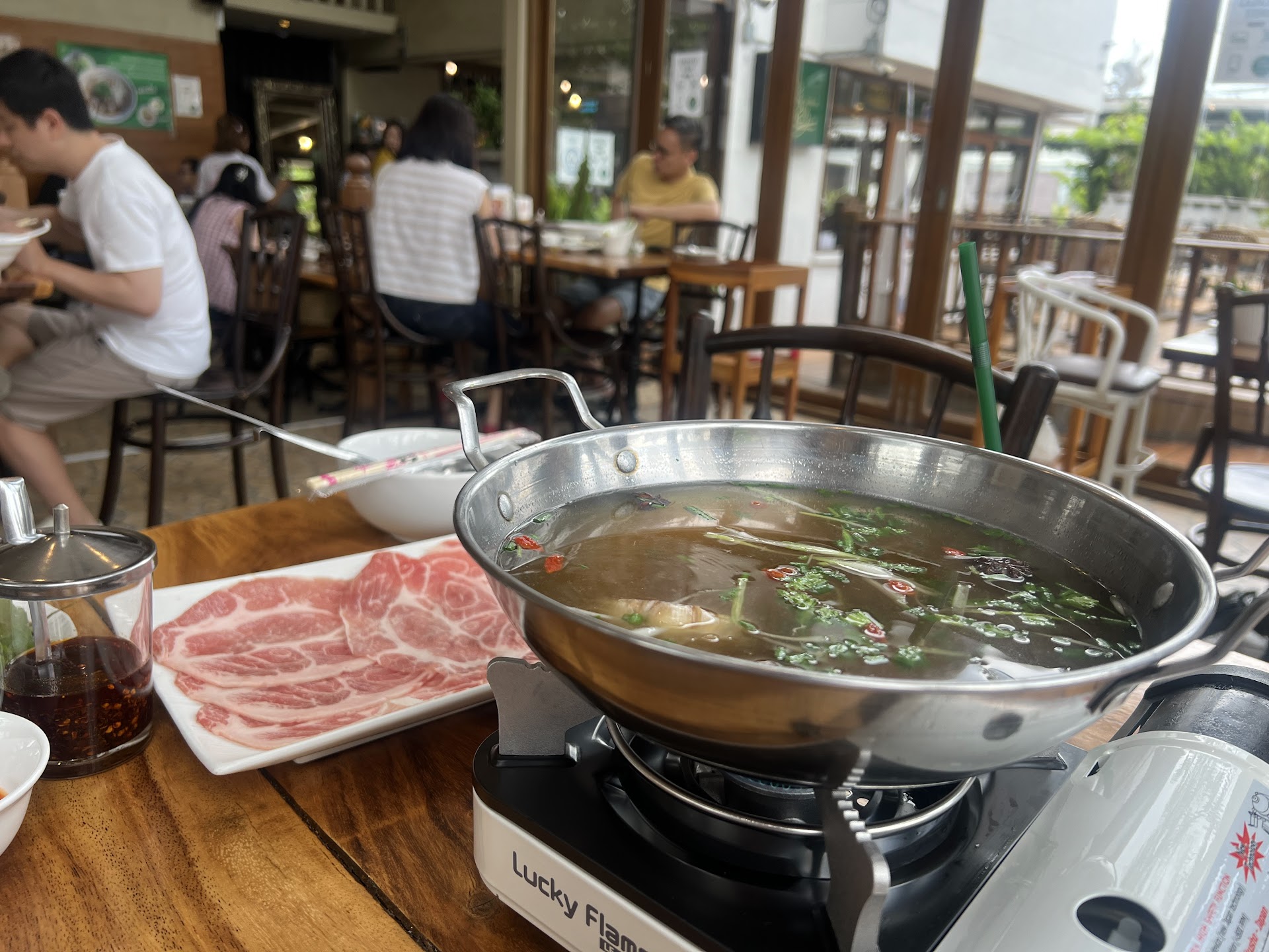 Read moreGood food and atmosphere, quite busy during lunch hours but service was still excellent. We ordered the Pho Hot Pot, which was great! The soup was very tasty and we even asked for a refill (and extra lime slices). They also offer Pho as a single bowl serving, but would definitely recommend the hot pot if you are eating with friends. We also ordered their Nam Nueng Roll, which was quite good too. They serve a complimentary bowl of fresh vegetables and herbs which served as a nice addition to the food. Parking is available nearby, but if the lot is full you can park on the street by the...