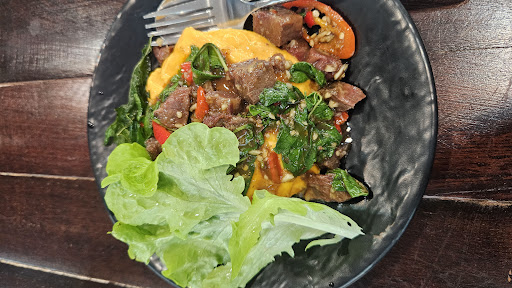 I wasn't expecting to be so blown away. I asked for a recommendation and they suggested the stewed beef with holy basil and creamy omelette on rice. I appreciated that they didn't select the most expensive dish on the menu. I wouldn't usually go for something like this but I'm so glad I did. The beef just melted in my mouth. It was beautifully sauced and season and the creamy omelette on rice, whilst again not something I would go for, was the perfect paring. This dish at 105 Thai baht was ridiculous value for money. I've paid hundreds elsewhere and the quality was nowhere near. Compliments to the chef.