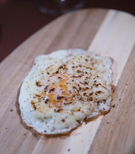 -Egg Bomb (125 บาท) เมนูแนะนำของทางร้าน ไข่ดาวอบกับ Mozzarella Cheese นุ่ม หอม ไม่เค็มเกินไป เป็นการยกระดับไข่ดาวแบบดีงาม แนะนำทานพร้อม sparkling wine Anna Spinato Cuvee จากอิตาลี (แก้วละ 280 บาท/ ขวดละ 1,320 บาท) ซึ่งมีความสดชื่นและกลิ่นผลไม้เบาๆ ช่วยตัดความมันของชีสและไข่ได้เป็นอย่างดี