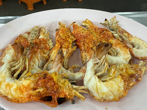 Read moreStreet food style seafood, with wonderfully fresh ingredients. They have ice boxes filled with prawns of varying sizes, which are the star of the show here. You can order these grilled, with prices varying by weight, size, and quantity of the ingredient. The owner gave me a good deal since I ordered several. I also had the steamed fish with with lime, chili, and garlic (pla neung manao), which arrived on a metal plate heated by coals, really soft and tender. It even came with a light fish broth on the side. Beer is the only alcohol served. Kitchen is open so you can even see them prepare it. Spacious and...