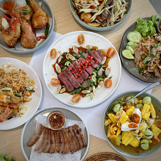 "คอหมูย่าง" - Charcoal Grilled Pork Neck 💰 : 220THB ส่วนคอหมูที่คัดพิเศษเฉพาะส่วนที่มีมันแทรกสวยๆ หมักด้วยซอสสูตรของทางร้าน ก่อนย่างบนเตาถ่าน...