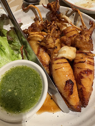 Instead, you should taste the green chilli sauce (tangy & light spiced) separately from the squid in its original sauce.