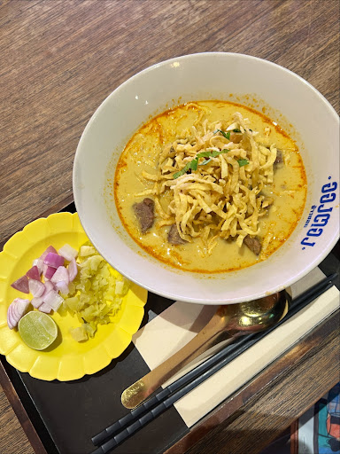 stewed beef khaosoi - the curry soup is very creamy and rich! the beef is tender with extra richness from being soaked in the soup. this meal would be perfect during rainy or cold days 🍜