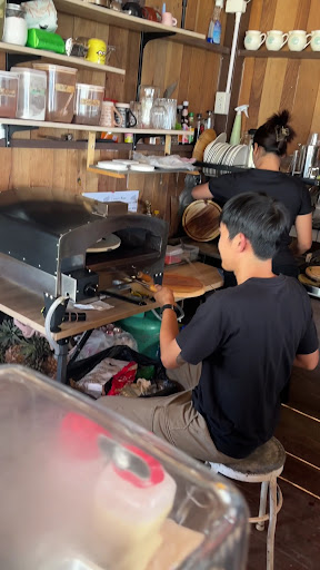 แนะนำพิชซ่าอร่อย แป้งบาง อร่อยมาก ราคา 250-300 บาท ส่วนเครื่องดื่ม สั่งมอคค่า กับโกโก รสชาติคล้ายๆ กาแฟพันธุ์ไทย แค่ราคาสูงพอควร มอคค่าปั่นแก้วละ 90 บาทสถานที่ ที่จอดรถน้อย ร้านไม่ใหญ่มีโค๊ะนั่งประมาณ 4-5 โค๊ะ แต่วิวดีมาก ลมพัดเย็นสบาย วันนี้ไปถึงประมาณ 14.00 น. มีลานกางเต๊นท์ เจ้าของร้านบอกว่า ช่วงนี้มีทะเลหมอกให้เห็นตอนเช้าเกือบทุกวัน