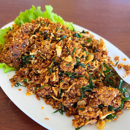 Read moreห้ามพลาดสำหรับอาหารพื้นเมืองของเพชรบูรณ์ แกงส้มปลาคังอร่อยมาก รสชาติคล้ายแกงเหลืองของทางภาคใต้โดยคุณพี่เจ้าของร้านเป็นคนปรับสูตรด้วยตัวเอง รสจัดแต่แปลกไม่เหมือนที่ไหน ชอบมากๆ ลาบปลาร้าก็ดีมากหอมกรอบหวานไม่เผ็ดเลย ต้องลองจริงๆ ผัดฉ่าปลากรายเข้มข้นมาก เนื้อปลาหนึบอร่อย ไม่คาว พริกเผ็ดถึงใจ ราคาไม่แพงเฉลี่ยแล้วจานละ 150 บาท...